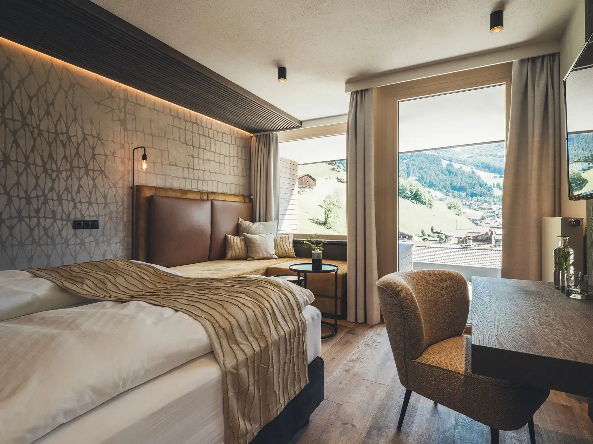 Danach eine Massage? Die Wahl fällt schwer: Lieber eine therapeutische Massage, Hot Stone oder Shiro Abhyanga, die spezielle Kopf- und Nackenmassage aus dem Ayurveda? Neu sind die Gesichtsmassage, die mittels Akupunktur-Punkten und Shiatsu-Wissen Kollagen und Hyaluronsäure aktivieren kann, und die indische Kopfmassage als echter Stress-Killer. À propos Wohlfühlen: Im unverschnörkelt-alpinen Rahmen bietet der neue Wellnessbereich richtig viel Freiraum zum Relaxen. In der Panorama-Event-Sauna ist beim Aufgussplan Phantasie Trumpf: Beim Relax- oder Erlebnisaufguss – oder dem „Highway to Hell“ Crash Ice-Aufguss, der so richtig einheizt. Unterstützt von Duft, Musik und Lichteffekten. Doch der adults only Rooftop-Spa bietet auch viel Ruhe im Outdoor-Whirlpool, wahlweise mit sonnigem Berg- oder abendlichem Sternenblick. Und dazu Rückzugsmöglichkeiten auf der Sonnenterrasse oder in der Lounge. Lieblingsort zum aktiven Erwachen ist der 20 Meter lange Edelstahl-Infinitypool. Sollte es gleich am Morgen gelingen, die gemütlichen Zimmer zu verlassen, die modernen Alpinlook mit Retro-Touch und viel Eichenholz kombinieren.