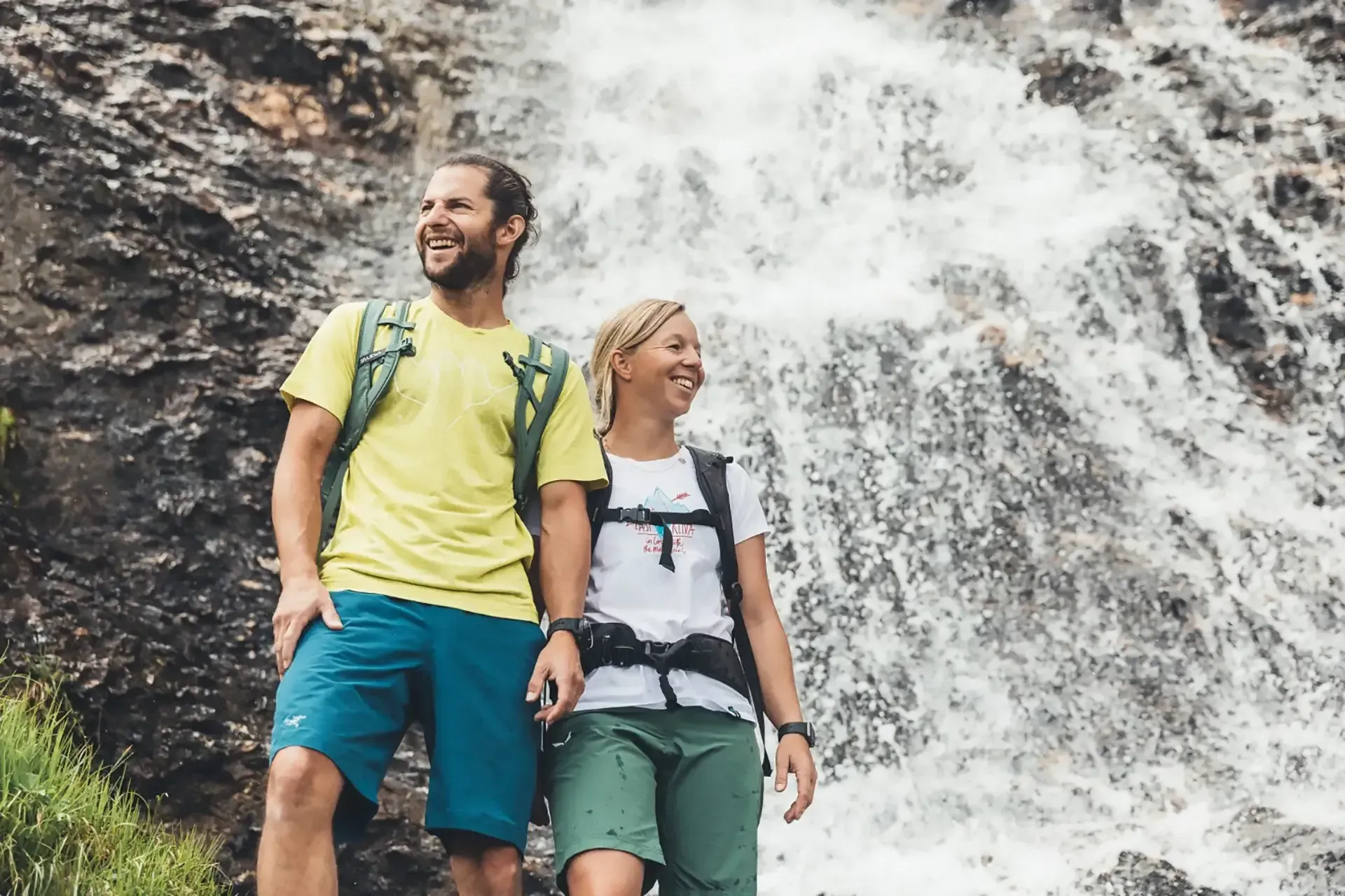 Im Tirolerhof Tux nahe dem Tuxer Gletscher ist man direkt dran an Wanderwegen, Bike-Routen und Klettersteigen. Und am herrlichen Wellness-Feeling danach. Das Haus setzt nicht nur mit dem Wellness-Neubau und top-modernen Zimmern einen stylischen Akzent, sondern ist zugleich angenehm authentisch. Denn selbst in ausgefallensten Design-Ideen findet sich die Farbigkeit der umgebenden Natur wieder. Die Tirolerhof-Familie füllt das moderne Haus nicht nur mit Charme, sondern mit attraktiven Aktivitäten, die es so nicht überall gibt. Niemand kennt die Natur und die Berge besser als Nina und Matthias, die beide aus dem Leistungssport kommen. Matthias ist sogar dreifacher Berg- und Kletterweltmeister. Ihm darf man sich beim Einstieg ins Klettern bedingungslos anvertrauen. Etwa, wenn er zur Tour auf den Huterlaner Klettersteig nach Mayerhofen aufbricht, häufig sogar mit Familien und Kindern ab sechs Jahren. Mit Wanderführerin Nina geht’s hautnah hinein in die wilde Schönheit der Tuxer Natur. Etwa über die Vallruckalm zum Eiskarsee und weiter zur Hippoldspitze. Weil Wandern eine der Lieblings-Aktivitäten der Gäste ist – und gern mal ein Gipfel dabei sein darf. Gefolgt von E-Biken auf der Penkenrunde und „Bike & Hike“ zum Tettensjoch. Wenn das Wetter mal nicht so mitmacht oder man einfach vor dem Wellnessen den Körper kräftig fordern will: Auch Indoor gibt es im zweigeschossigen Fitnessrefugium „Kraftwerk“ Top-Sportprogramme von Krafttraining und „Powerbauch“ bis zum „High Intensity Interval Training“ und Stretching. Und ganz neu Yoga sowie Meditation – sieben Einheiten in der Woche!