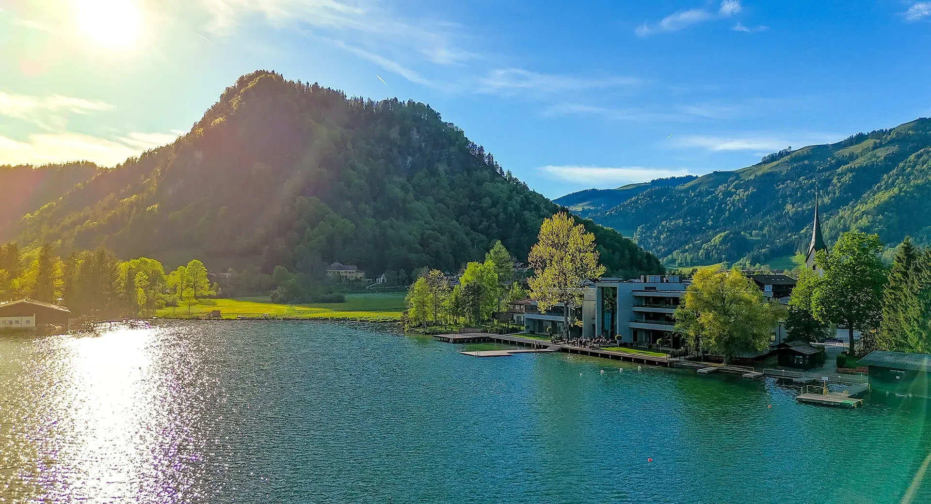 Und weil neben dem Wohnen und Genießen auch die Bewegung nicht zu kurz kommen darf, bietet Das Walchsee Aktivresort ein facettenreiches Aktivprogramm für seine Gäste. Wandern, Biken, Golfen, aber auch Wassersport sind hier direkt vor der Haustüre oder in unmittelbarer Umgebung möglich. Zwischen den sanften Chiemgauer Alpen und dem Kaisergebirge kann man in die faszinierende Bergwelt eintauchen oder den See als Ruhepol und Kraftquelle nutzen.