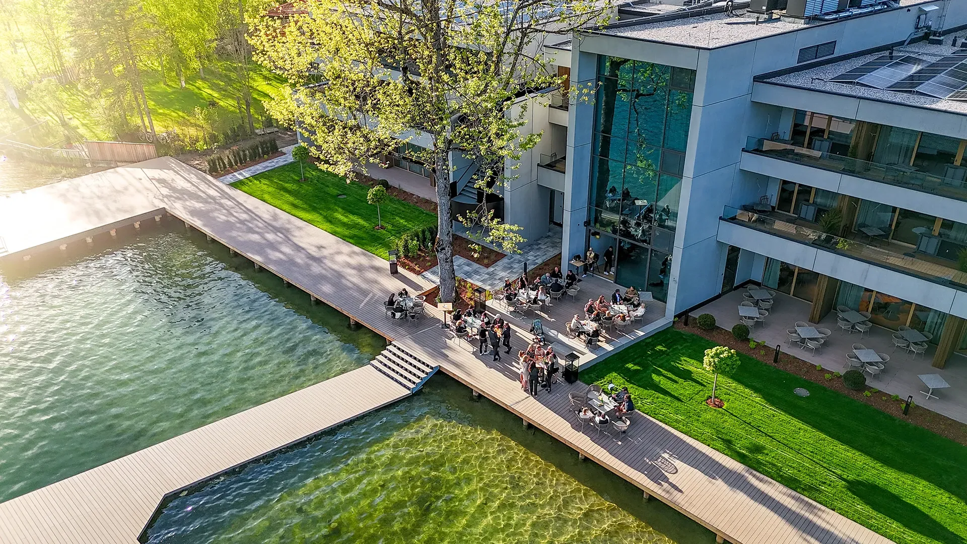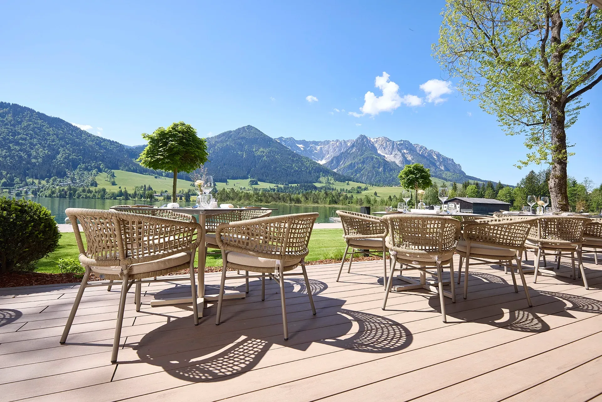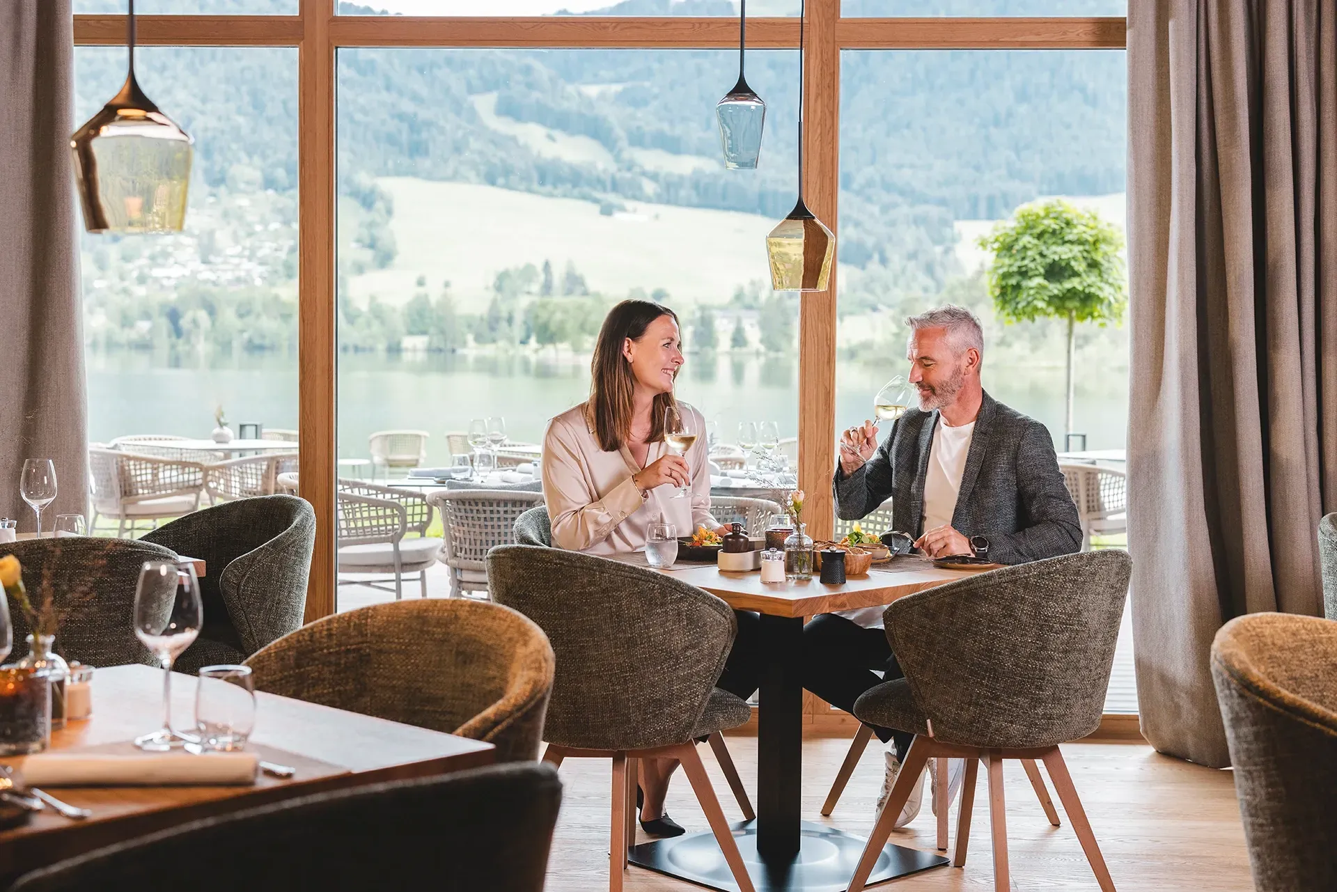 Ein besonderes Highlight ist das neue Seerestaurant Das Lakes mit gehobener À-la-carte Küche, Sonnenterrasse und einer modernen Bar, immer allgegenwärtig: Der direkte Seeblick. Die wohnlich-eleganten Suiten und das stilvolle Ambiente laden zum Verweilen ein und auf Wunsch kann das Frühstück auch im Komfort der eigenen Suite serviert werden, ein exklusiver Service für besondere Genussmomente in privater Atmosphäre.