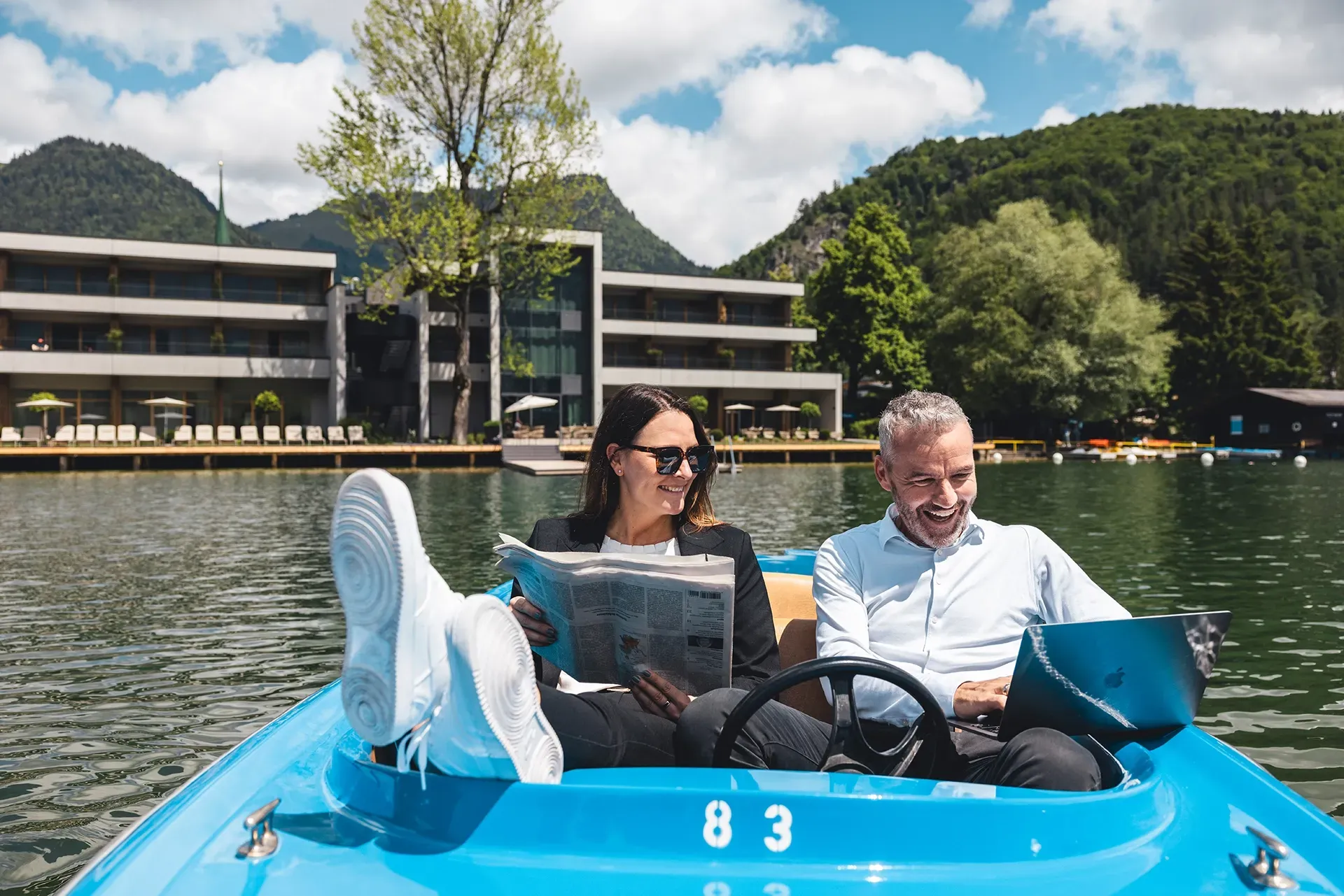 Und nachdem das Gute bekanntlich so nah liegt: direkt vor der Hoteltür startet das Wasservergnügen, von Stand-Up Paddling über Wasserski bis zum Ruderboot und E-Boot, hier kann man aus dem Vollen schöpfen, Neues Ausprobieren und für sich Entdecken oder einfach nur Eintauchen in das Urlaubsgefühl. Für welche Art der aktiven Bewegung man sich auch entscheidet, eines ist immer garantiert: Der See, der Berg, die Natur, die Ruhe. Ein weiterer Pluspunkt: Das fachkundige Gastgeber-Team empfiehlt gerne passende Touren, ganz auf die persönlichen Bedürfnisse und Wünsche der Gäste abgestimmt, für unvergessliche Urlaubsmomente. Bergeweise Entspannung verspricht nach der aktiven Bewegung der Relax-Bereich.