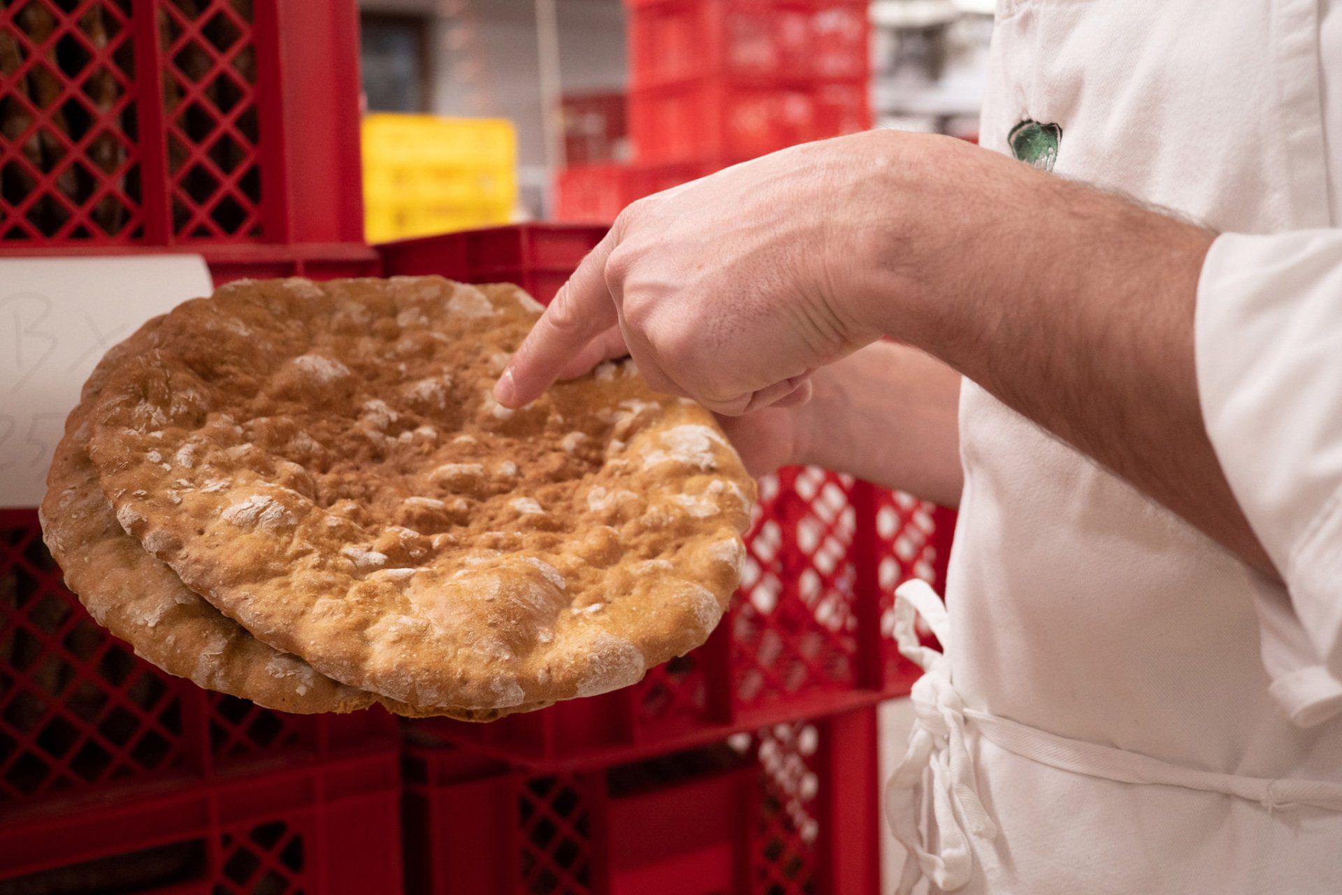 Dann kommen die Brote in den Ofen. Das verströmt sofort einen köstlichen Duft, vor allem wegen dem Ziegenkraut, dem Fenchel und Kümmel, den Bergkräutern, die der Bäcker hier aus der Region bezieht. Die Kräuter wachsen zwischen 1400 und 1500 Metern, ungefähr da, wo momentan noch die Schneegrenze ist. Sicher wachsen die Pflanzen so weit oben langsamer und gedrungener, merkt er an. Doch das führt nur zu einem noch intensiveren Geschmack, weswegen Profanter froh ist, nicht nur regionale, sondern auch qualitativ hochwertige Zutaten direkt von hier beziehen zu können. So, wie man es schon vor hunderten von Jahren gemacht hat.