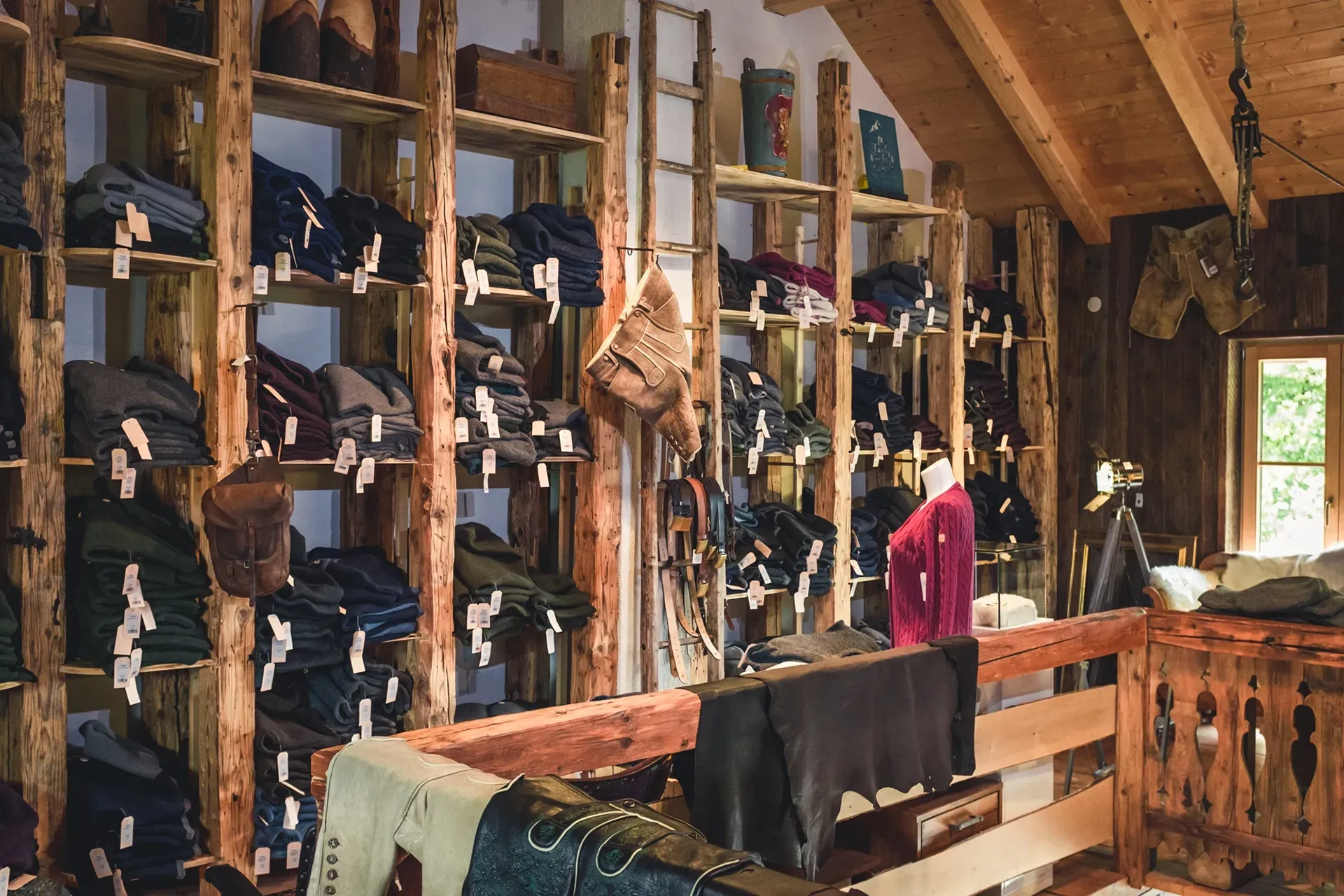 Noch immer trage ich Vreni auf meiner Haut und genieße das wohlige Gefühl um mich. Dabei stöbere ich durch das Geschäft und bewundere unter anderem „Thomas III“, „Benita“, „Alex“ und „Katharina“. Allesamt Janker, welche die Namen von Wegbegleitern, Freunden und der Familie tragen. Eine Widmung des Häuptlings. Immer wieder streife ich mit der Hand über edles Wollgemisch und reinste Stoffe. Hier in Wackersberg bin ich gerne und wie ich erfahre, kommen auch alle anderen Kunden mit Freude zu ihnen „raus“. Denn hier ist genügend Raum und Zeit für eine ausführliche Beratung. Es herrscht die nötige Ruhe, um die passende Farbe und das Lieblingsmodell zu wählen. Dass Menschen aus Köln und Hamburg anreisen, ist keine Seltenheit. Wieso auch nicht. Dieser schöne Flecken Erde lässt sich ausgezeichnet mit einigen Tagen Urlaub kombinieren.
