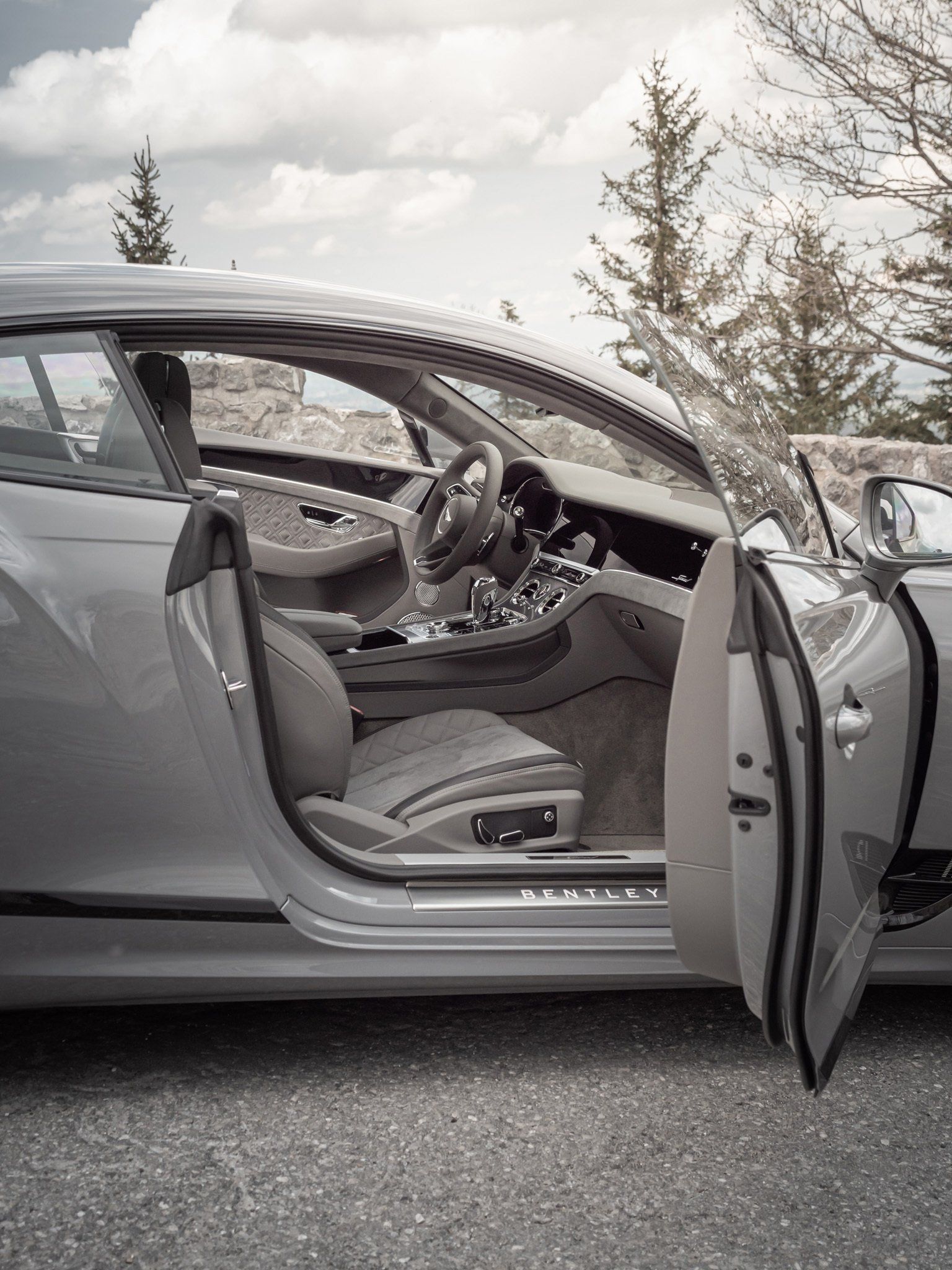Bevor es das erste Mal so richtig auf´s Gas geht, sind einige Hintergrundinformationen noch sehr interessant. Die Briten wollen in weniger als fünf Jahren komplett auf Hybrid-Modelle und 2030 dann sogar ausschließlich auf komplett elektrobasierte Antriebe setzen. Dementsprechend „röhrt“ der sechs Liter große Zwölfzylinder (genauer: der bei den Briten verbaute W12) zumindest bei den neuen Modellen nicht mehr allzu lange unter der Haube, was für echte Verbrenner-Fans natürlich sehr schade ist. Die Eckdaten des in Cambrian Grey gehaltenen Sportwagens lassen aufhorchen: 659 Pferdestärken und ein Drehmoment von 900 Newtonmeter beschleunigen in 3,6 Sekunden auf 100 Stundenkilometer. Gemeinsam mit den zwei Turboladern stellt der neue Continental GT Speed so das schnellste Serienauto dar, das Bentley je auf den Markt gebracht hat.