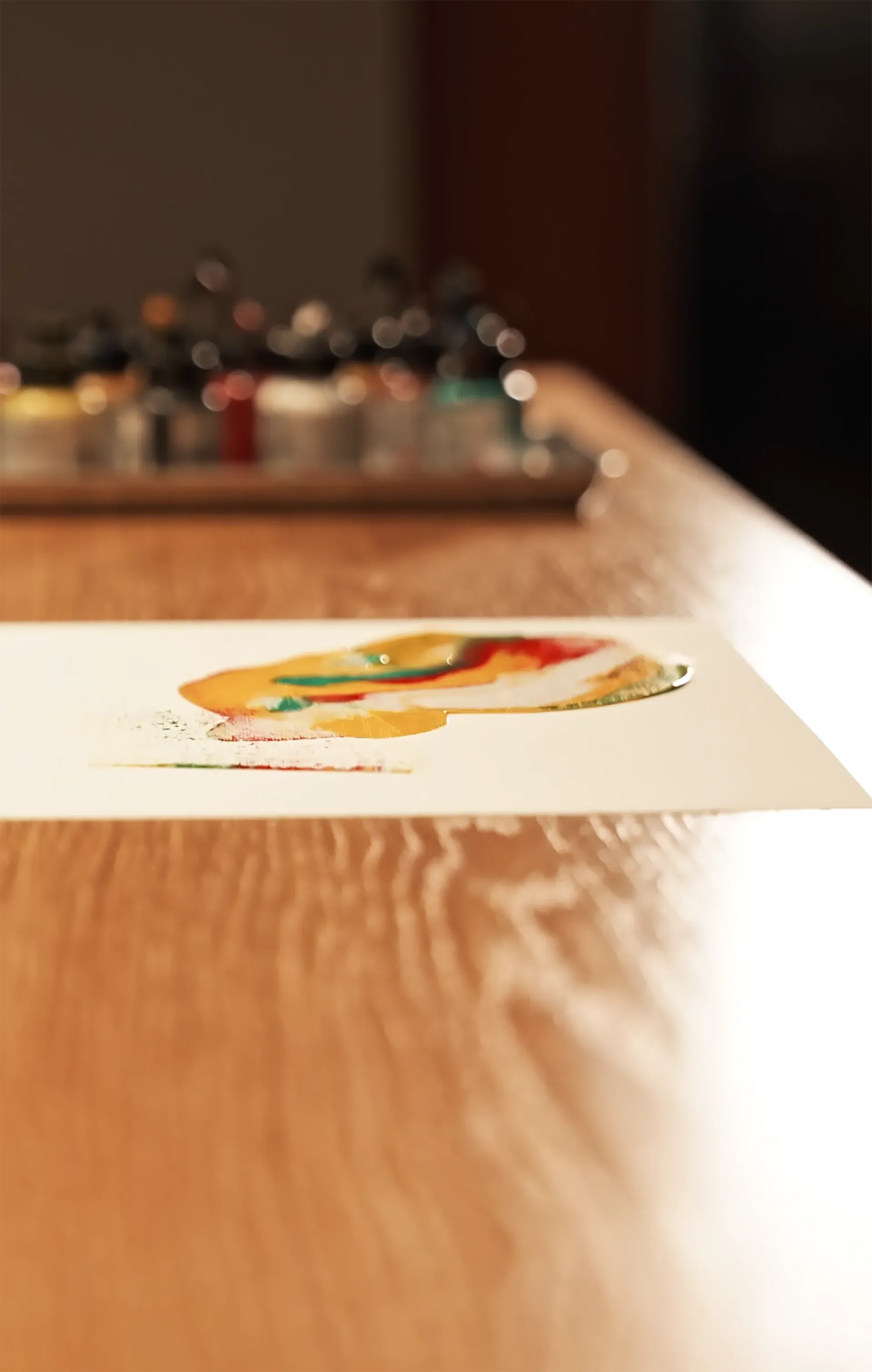 Unterbrochen wird das genussvolle Schlürfen von „Waterfall“, „Earthquake“ & Co. von Stefania, die den Gästen jetzt Büttenpapier, Stifte und Spatel hinschiebt. Die Aufgabe: Punkte in verschiedenen Farben auf das leere Blatt klecksen und mit dem Spatel verstreichen. Was damit passiert? Verrät sie nicht. Noch nicht.