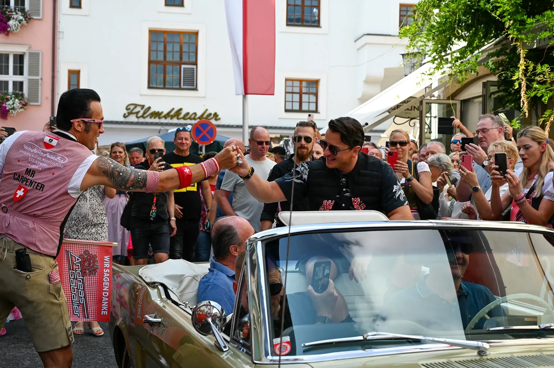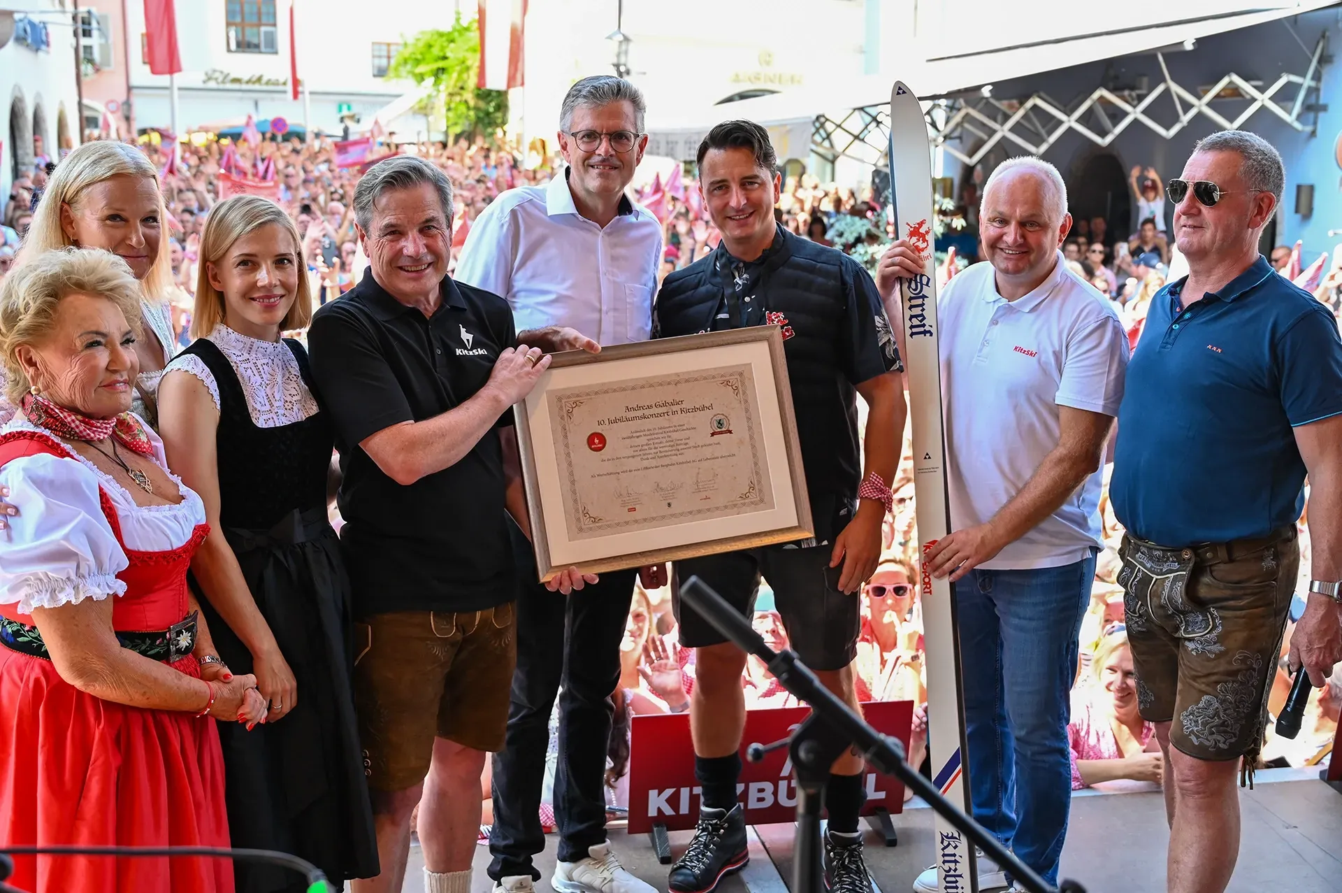 Der Samstag begann mit einer besonderen Ehrung für Andreas Gabalier. In der Kitzbüheler Innenstadt wurde ihm von Bürgermeister Dr. Klaus Winkler und den Vertretern der Bergbahn eine lebenslange Liftkarte überreicht – ein Symbol für seine tiefe Verbindung zu Kitzbühel. Diese Geste, begleitet von strahlendem Sonnenschein und einer mit Menschenmassen übersäten Innenstadt, zeigte einmal mehr, wie sehr der Sänger und die Stadt miteinander verbunden sind.