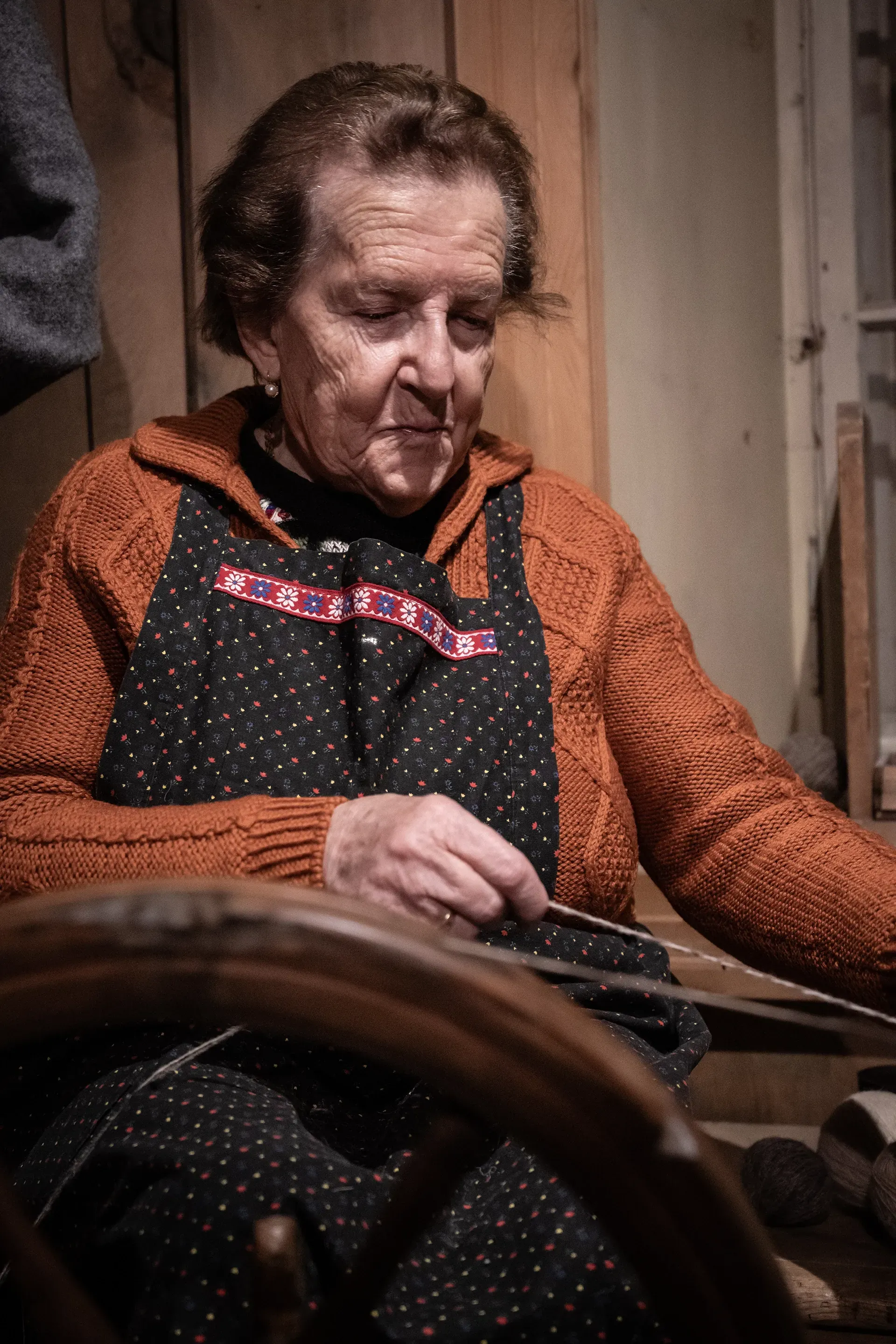 Früher, es ist keine einhundert Jahre her, da war Livigno nicht mehr als ein kleines Sträßchen. Die Familien hatten meist eine Handvoll Vieh, eine kleine Almwiese, ein Rübenbeet. Alles andere hielt den rauen Bedingungen nicht stand. Man war erfinderisch, wusste sich zu helfen. Desiré zeigt uns die Kleinigkeiten, die das damalige Leben lebenswert machten. Oben in der Stube sitzt Christina. Vor 85 Jahren wurde sie in Livigno geboren, ist heute nach langer Ehe allein, zeigt Gästen den Alltag von damals. Konzentriert und ruhig. Hinter einem Spinnrad sitzend, wird in ihren Händen aus Schafswolle Garn. Wieder ein zauberhafter Moment.