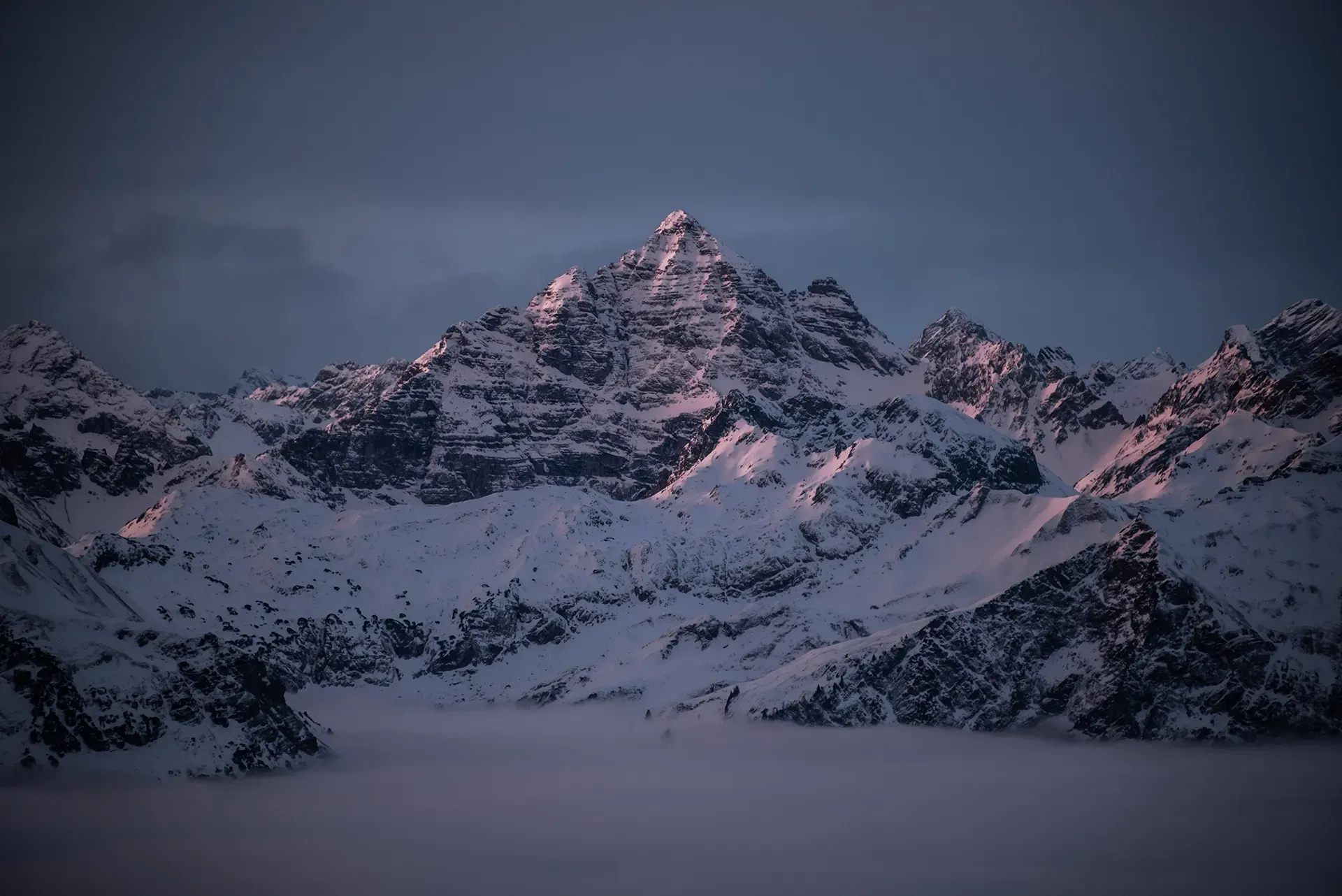 Die Alpen erstarren im Griff der Kälte. Wasser wird zu Eis, Tropfen zu glitzernden Skulpturen. Schluchten verwandeln sich in Kathedralen aus Frost, Gletscher breiten sich wie gefrorene Meere aus. Die Kälte formt Landschaften, die nur für Augenblicke bestehen, perfekt und vergänglich. Nebel steigt auf, Atem und Frost verschmelzen zu einer Welt zwischen Stille und Staunen. Hier zeigt sich die Kraft der Natur in ihrer stillsten, schönsten Form.