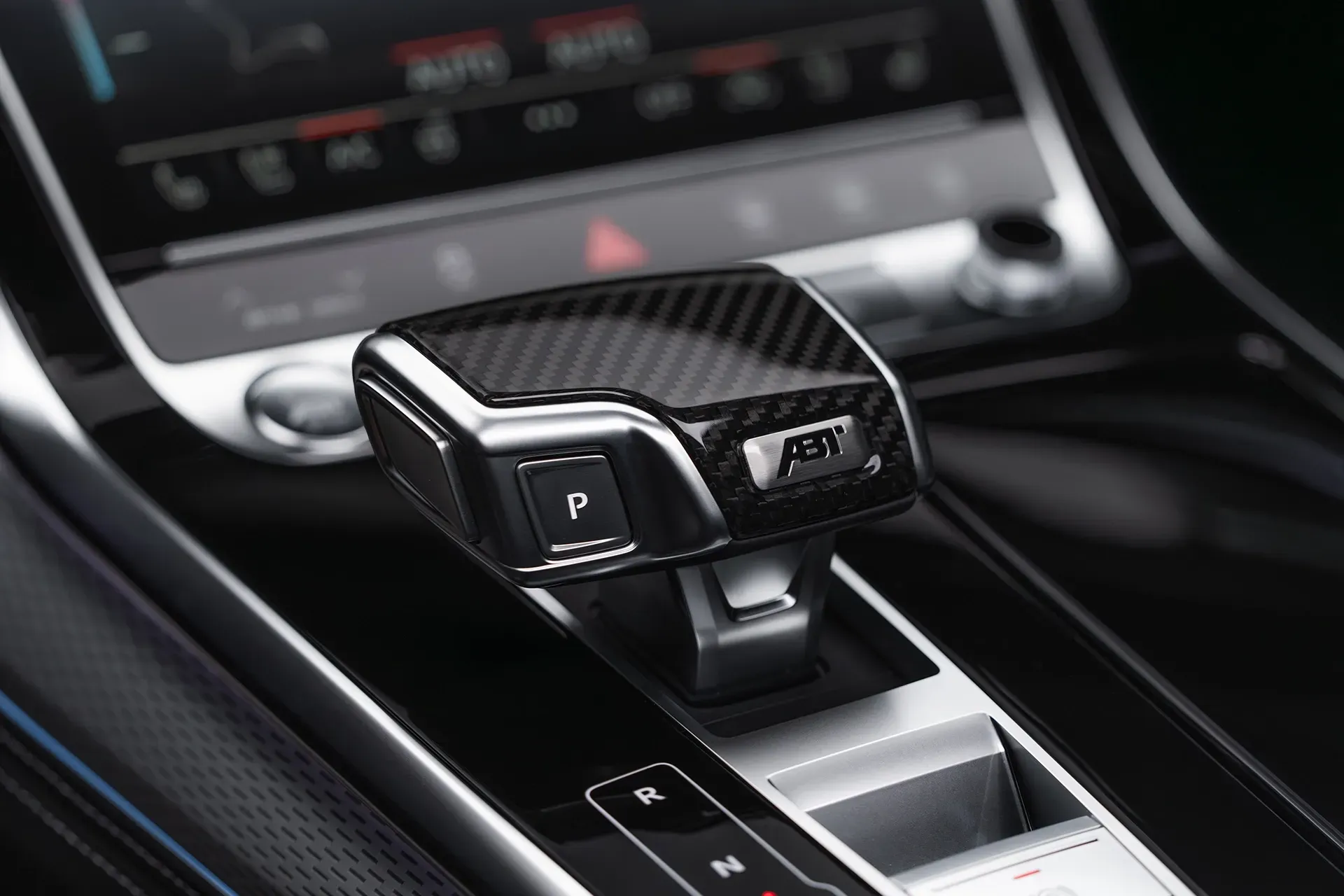 Auch im Interieur setzt der weltweit größte Veredler von Fahrzeugen aus dem Volkswagen-Konzern sportliche Akzente. ABT Schalttafel- und Sitzgestellblenden ebenso wie die Schaltknaufkappe sind in glänzendem Sichtcarbon ausgeführt. In den Türeinstiegen und dem Start-Stopp-Schalter leuchtet das ABT Logo.