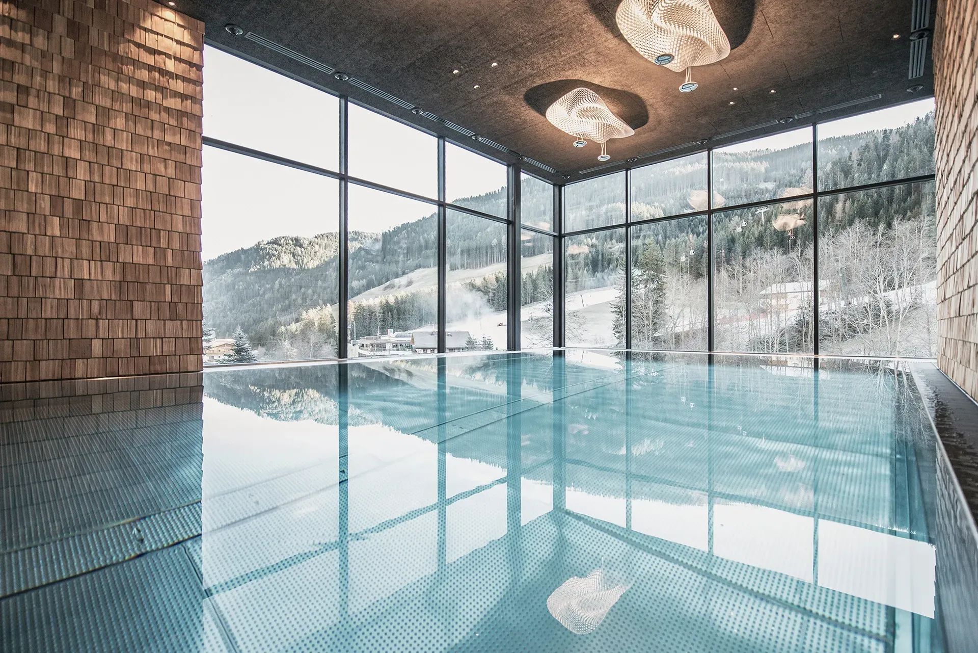 Die Aussichten von dem 17m langen Infinity-Pool und dem Außen-Whirlpool lassen die unglaubliche Freiheit spüren, die die Basis der Location bildet. Hier ist Raum zum Sein. Das merkt man, bereits bei der Ankunft in der Lobby und genauso in der Saunalandschaft, im Spa-Bereich, im Fitnessraum und an der Bar.